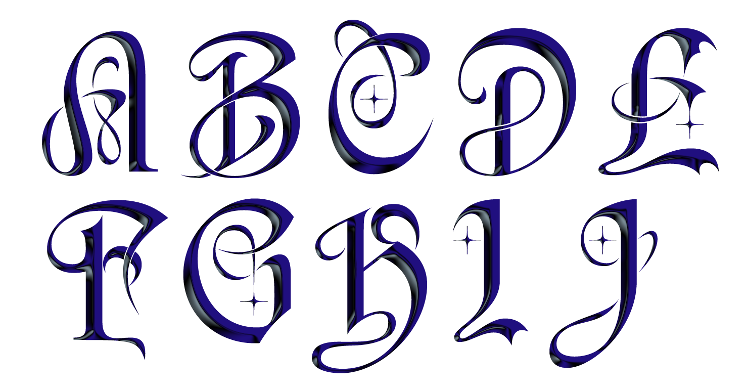 Caps are filled with vectorial stars and a maximal density or curves, while the lowercase are (gonna be) a reduction to the essence of the letterforms.
