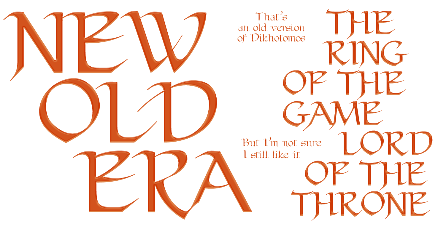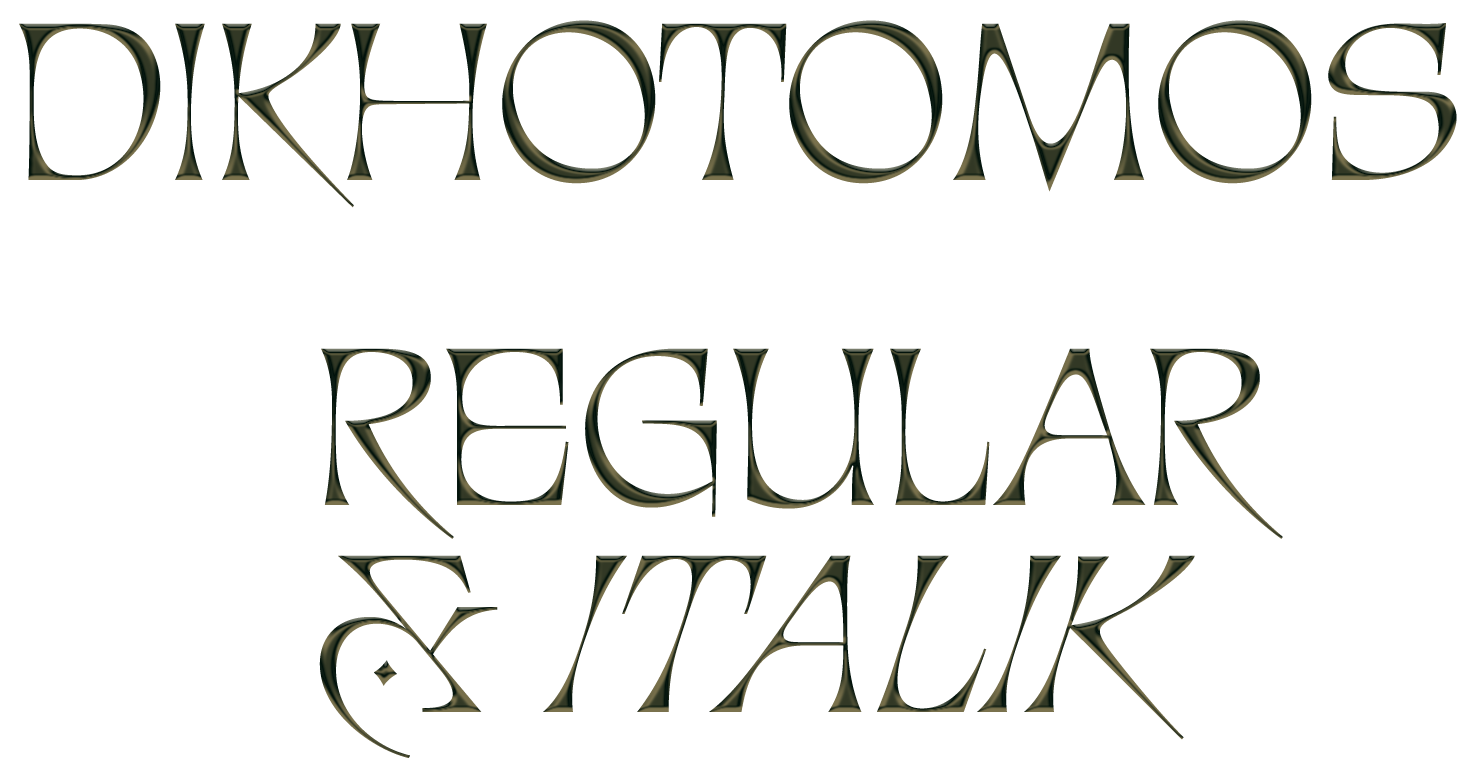 What a name of such an unconventional type. Dichotomy is a division between two ideas, an opposition between two things. Perhaps this typeface breaks every possible logic in matter of consistency, while being a true eyes-catcher by providing a peculiar texture to any text. Neither contrasted or inverted, squared or spiky, thin or plain, it is an hard type to use. Actually, it appears to be a tricky font for who isn’t prepare to give a dedicated energy into the setting of many custom parameters in order to get a better result. There is for instance a large amount of stylistic sets, in addition to many alternates, and even some cute symbols and ornament to display on special places of your design.
